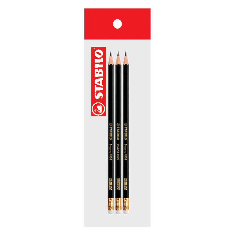STABILO LAPIZ SWANO 4909/HB NEGRO CON BORRADOR PACK DE 3UNDS
